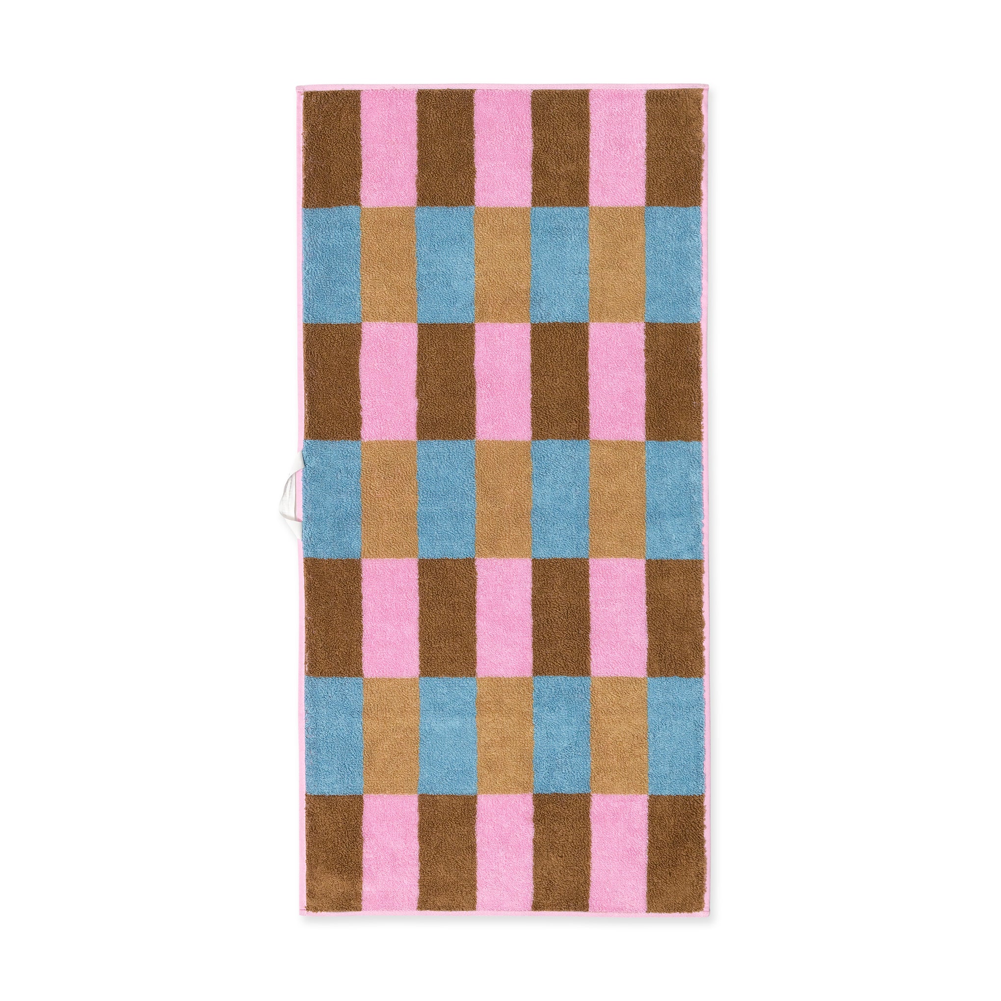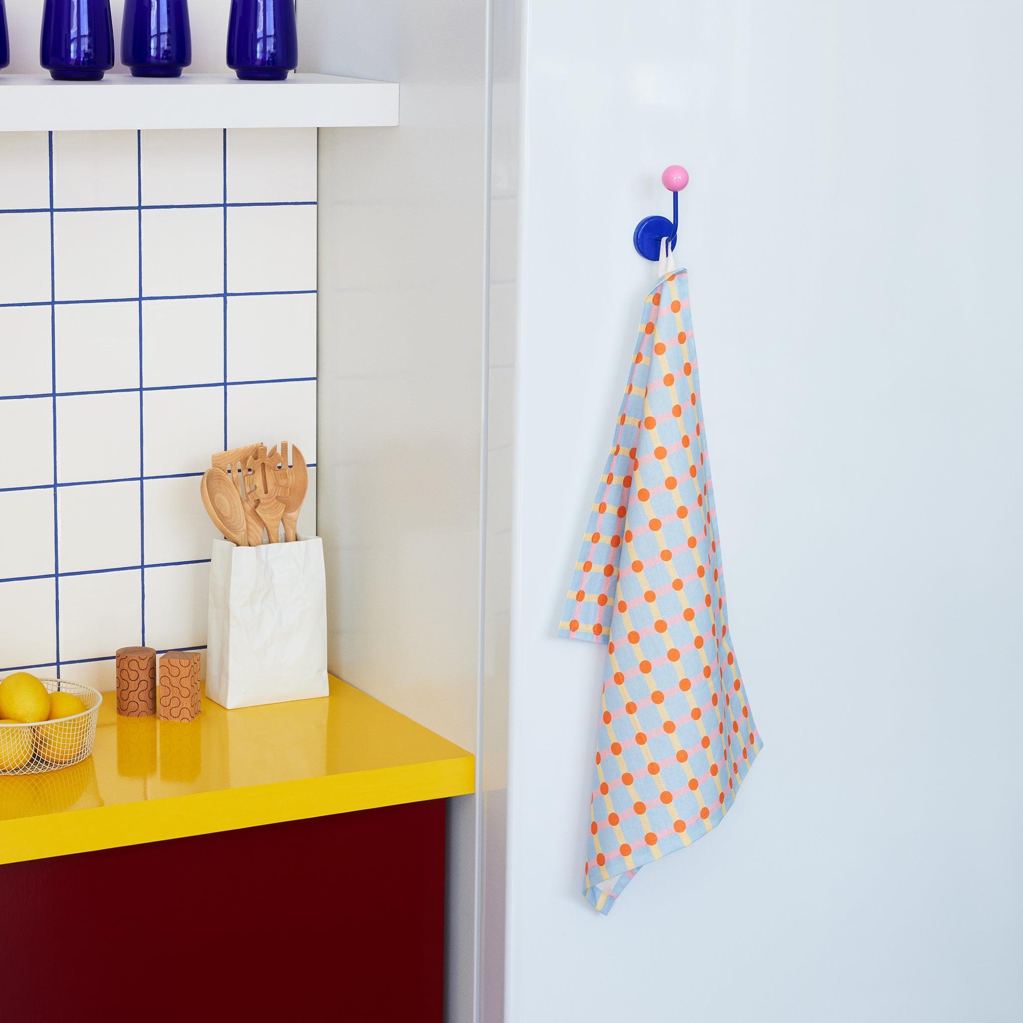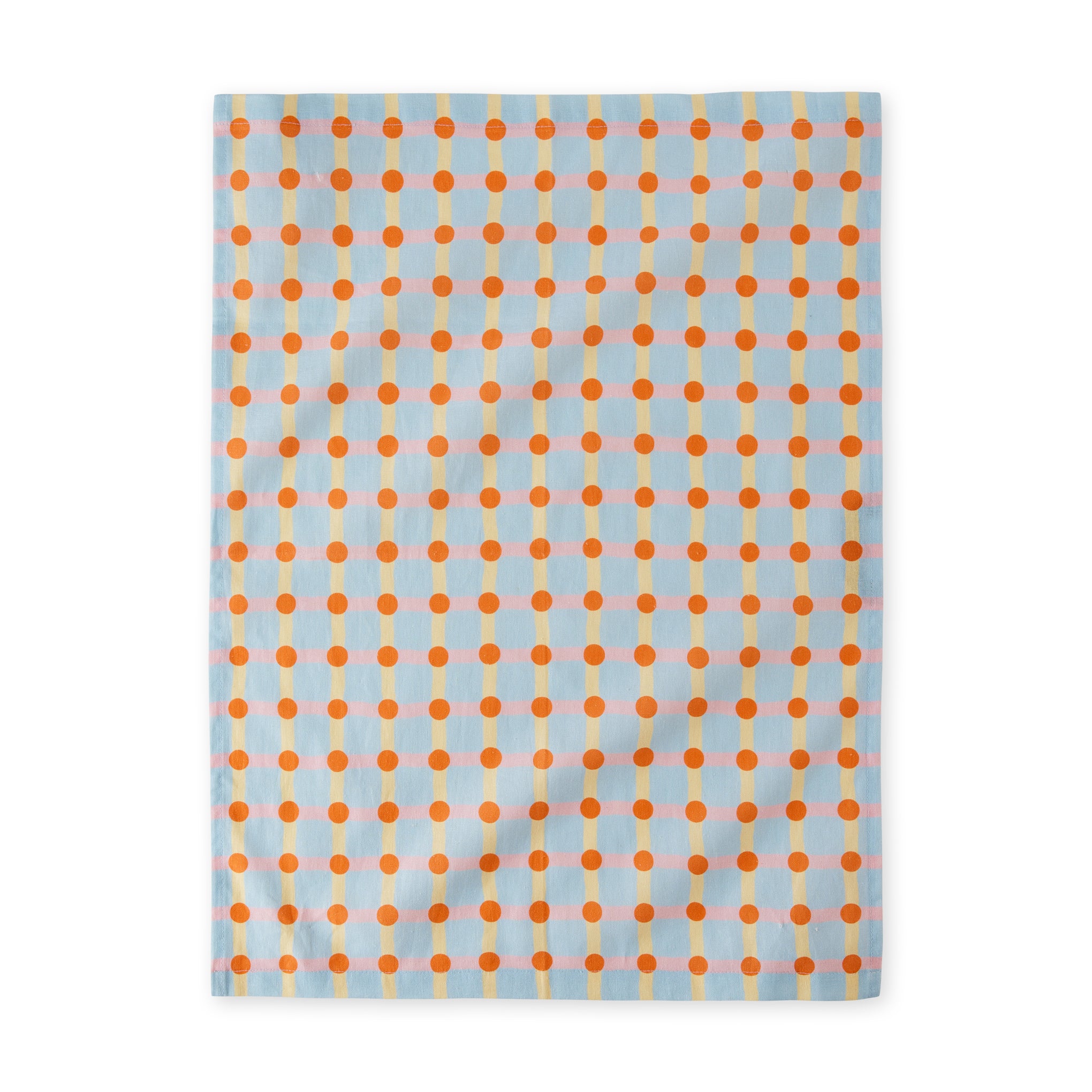 Dot Check Linen & Cotton Tea Towel - Light Blue/ Pink
