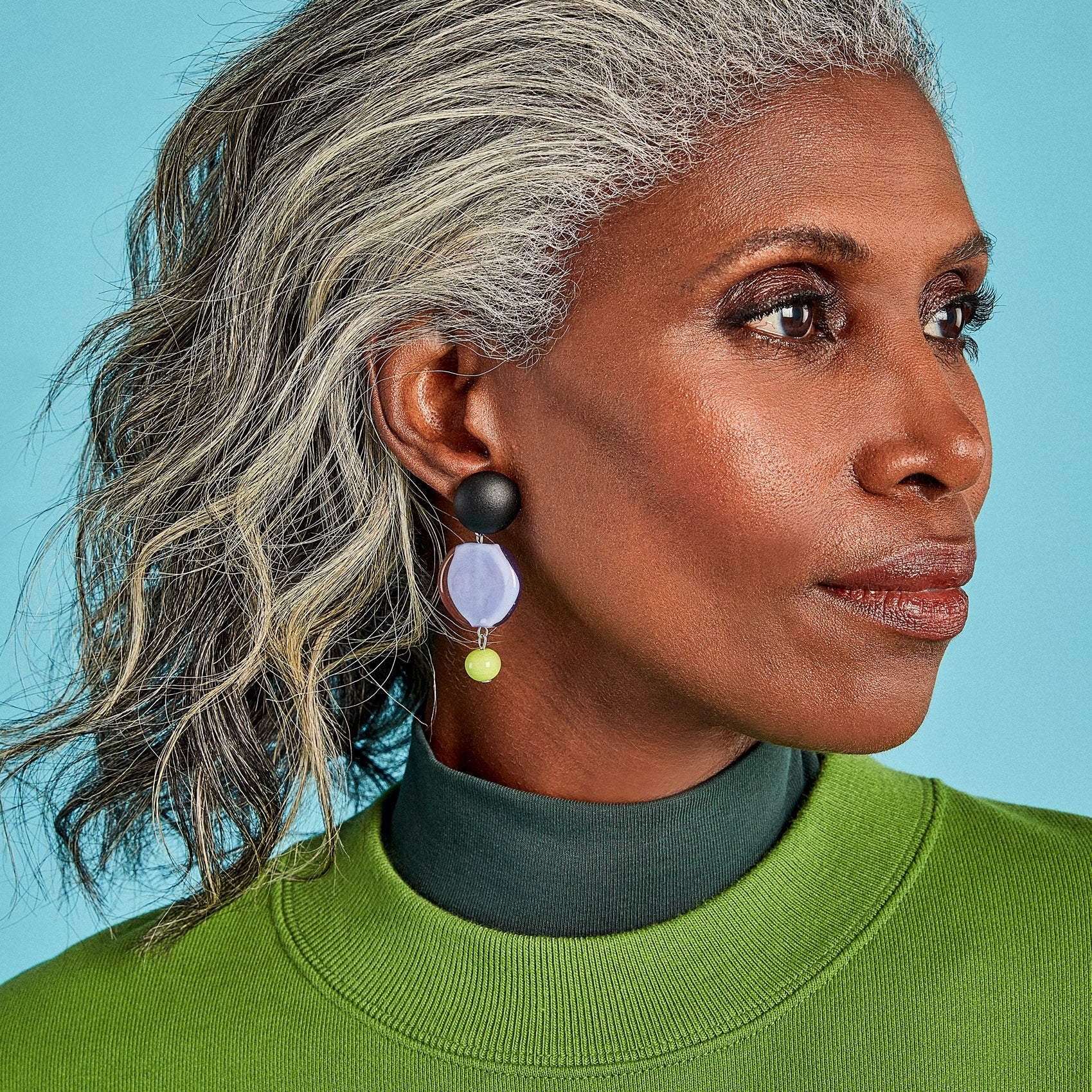 MoMA Exclusive: Working in the ancient Murano glass tradition that has been handed down within their family, the Sent sisters, Marina and Susanna, combine modern colors, shapes and finishes with traditional craftsmanship resulting in highly original glass jewelry. Each pair of Murano Drop Earrings is made in Italy, features sterling silver posts and is composed of a solid matte black bead, semi-translucent colorful glass bead, and a solid bead in contrasting color. Center bead measures 1”diam.
