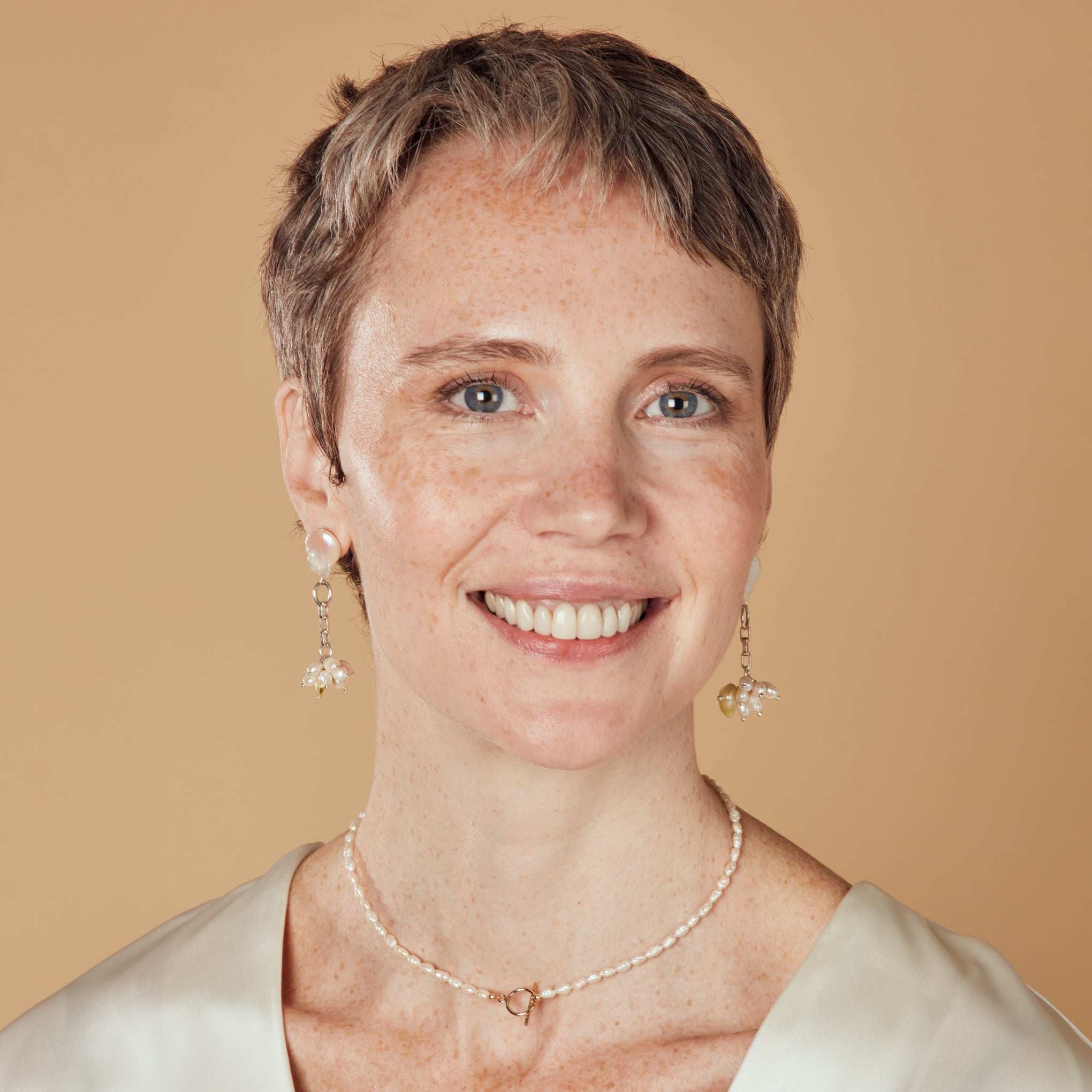 Handcrafted in Queens, NY, this Japanese Rice Pearl Choker Necklace is from Black-owned, women-operated brand Yam. Yam’s founder and designer, Morgan Thomas, is dedicated to creating new, yet nostalgic jewelry, combining upcycled materials, vintage silhouettes and cheeky nature motifs. This necklace is made with upcycled irregular-shaped rice pearls that Thomas sourced from vintage necklaces and deadstock sources that date back to the 1960s and ‘70s. Because the pearls all slightly differ in shape, this Yam necklace is a one-of-a-kind design. Also, some necklaces will have pearls that are smaller or larger than what appears in the photos. The Yam Japanese Rice Pearl Choker Necklace measures 16”l.