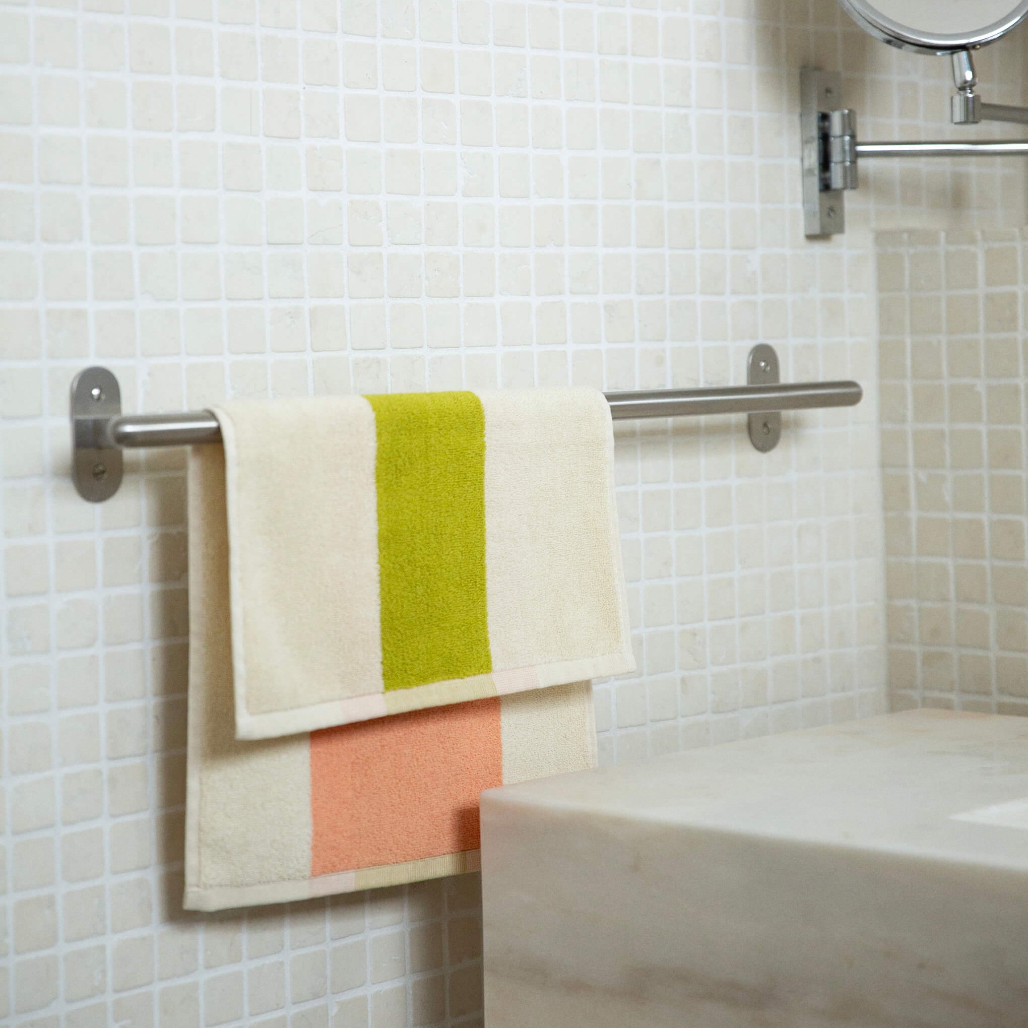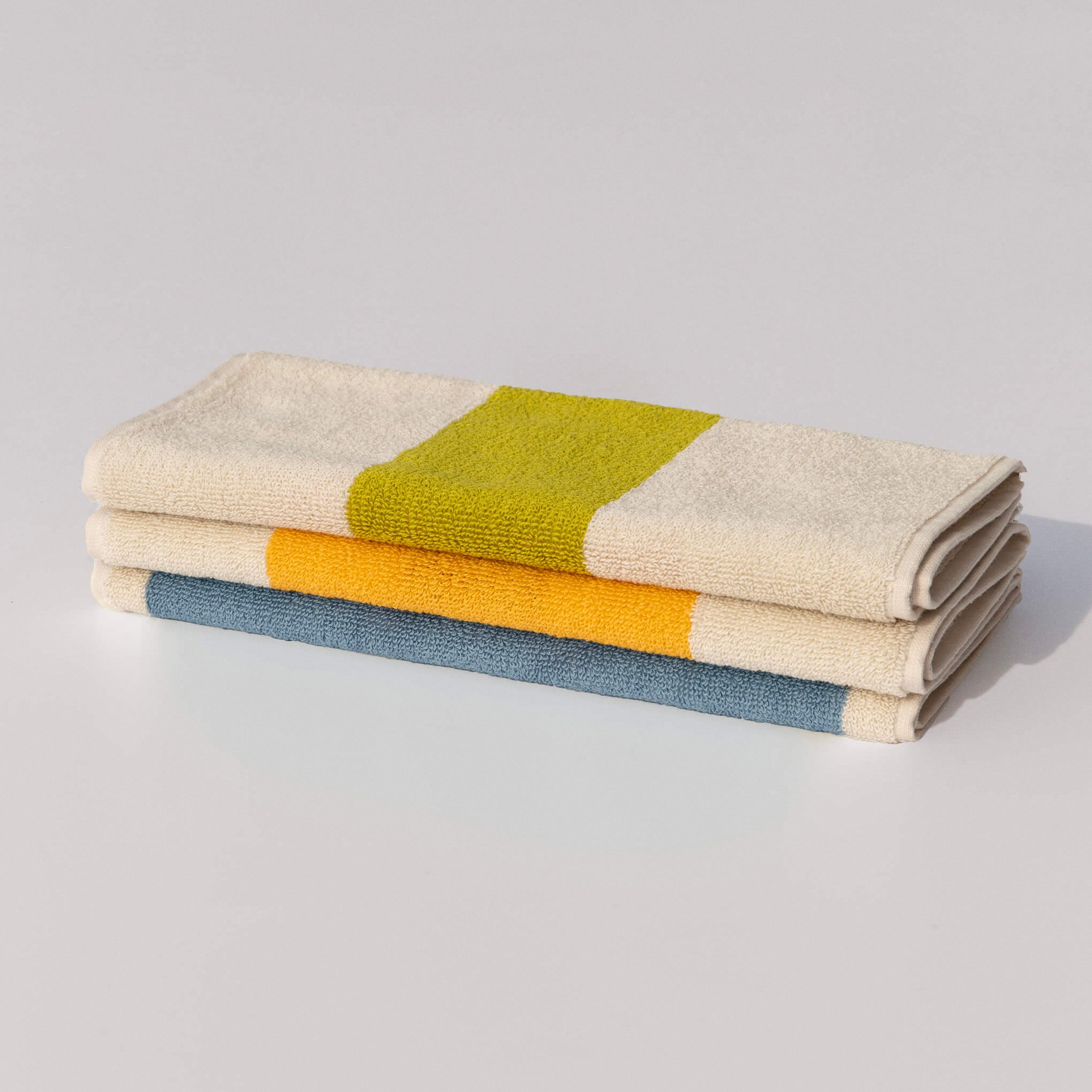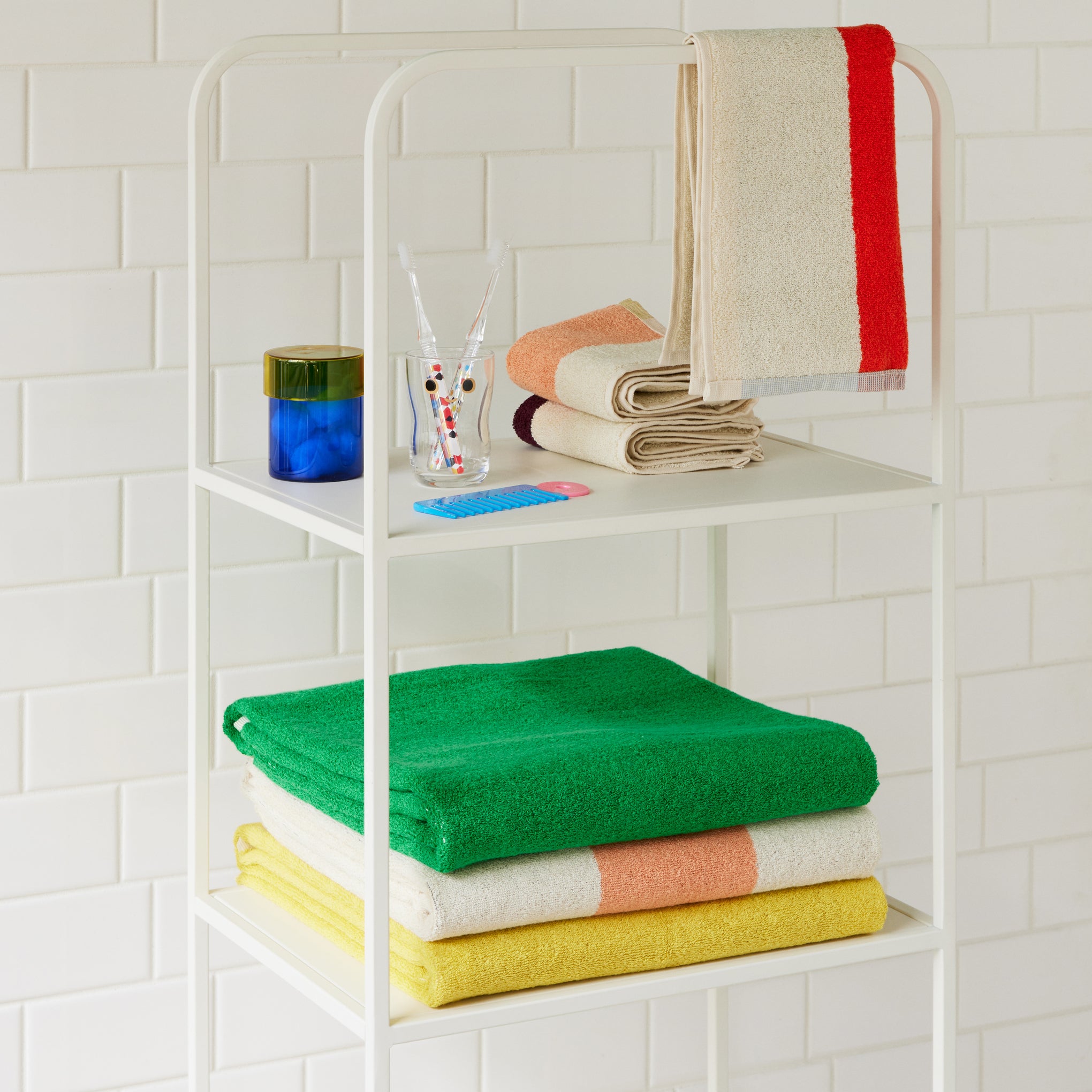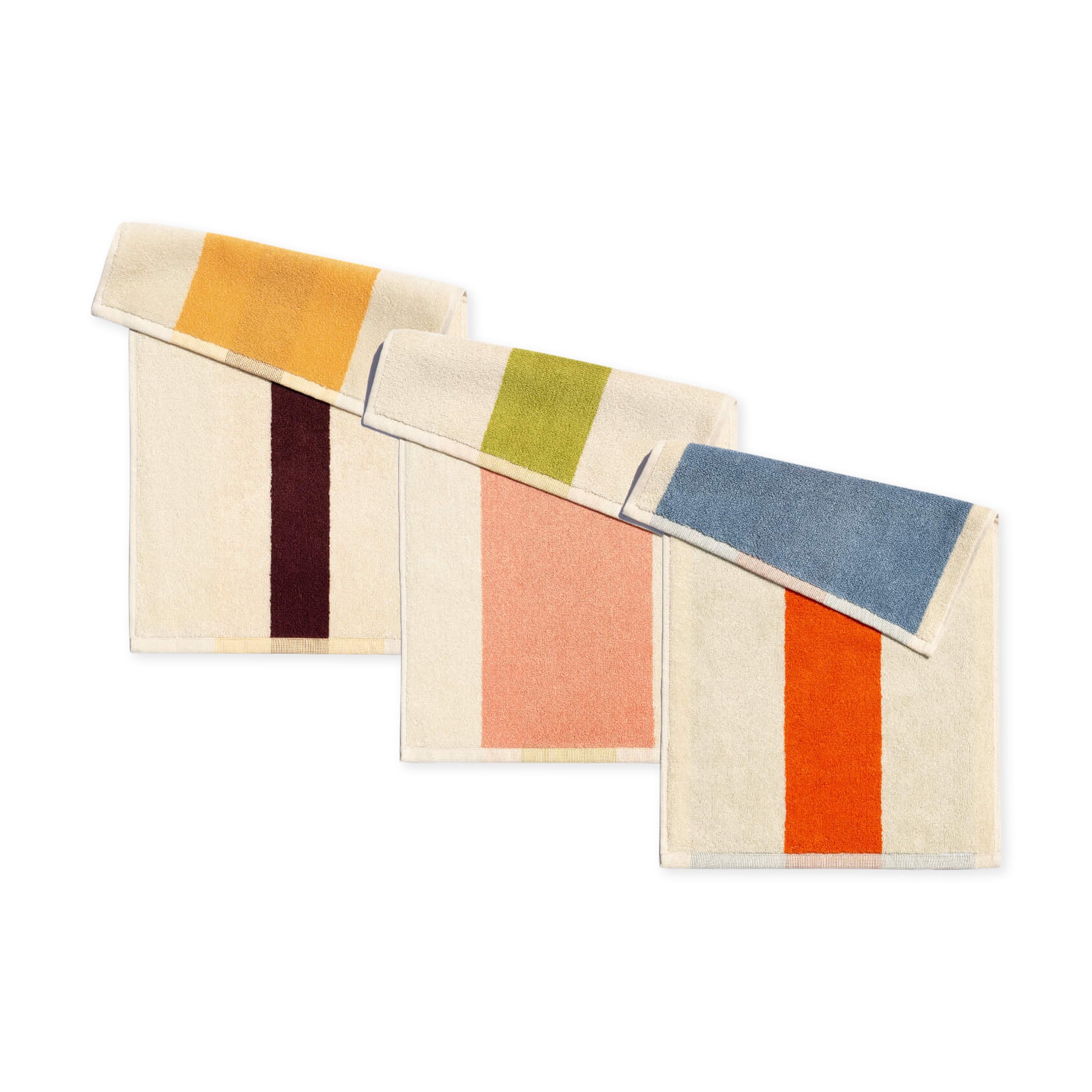 A collaboration with artist Karl Martens, the hues for this towel are derived from Martens’ project “Colours on the Beach.” Made in Portugal from 100% organic cotton, this towel features vivid blocks of contrast color on each side—a great way to add an upbeat pop of color to your bathroom. Machine wash cold, tumble dry low.